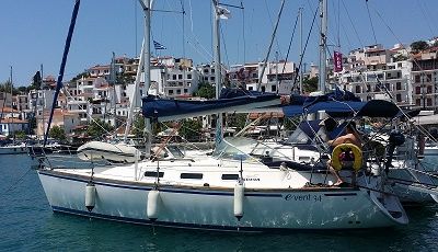 2-kabinsutförande: Till babord om nedgångstrappan finns L-format framåtvänt pentry med spis med ugn och dubbla diskhoar. Akter om pentryt finns en akterruff med dubbelkoj och garderob. Till styrbord om nedgångstrappan finns toalett. För om toaletten finns navigationsplats med separat sittplats vänd i färdriktningen. Salong med två längsgående soffor. Traditionell förpik. Inredningen är i Khaya-mahogny. 3-kabinsutförande: Till babord om nedgångstrappan finns L-format framåtvänt pentry med spis med ugn och dubbla diskhoar. Akter om pentryt finns en akterruff med dubbelkoj och garderob. Till styrbord om nedgångstrappan finns toalett. Akter om toaletten finns ingång till ytterligare en akterruff med en dubbelkoj. Salong med två längsgående soffor. Traditionell förpik. Inredningen är i Khaya-mahogny.