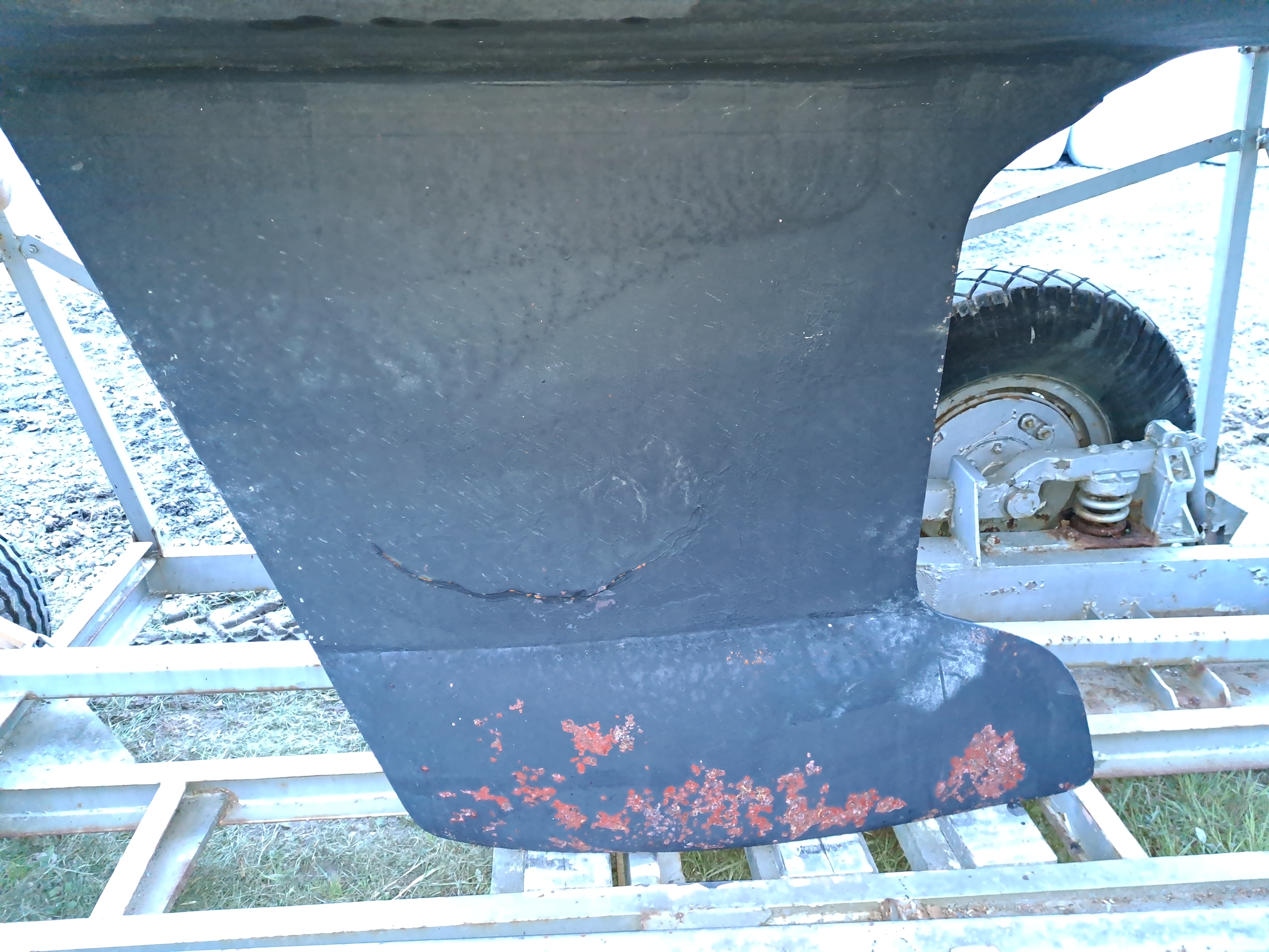 Har en maxi magic där hela järnkjölen förutom bulben är inplastad. På ena sidan av kjölen, mitt på, så har plasten delaminerat ifrån järnet och plasten pressats ut. Cirka en 40cm lång spricka i plasten. Se bild. Utöver denna skadan så är det några sprickor i plasten men ingen delaminering utöver den på bilden.