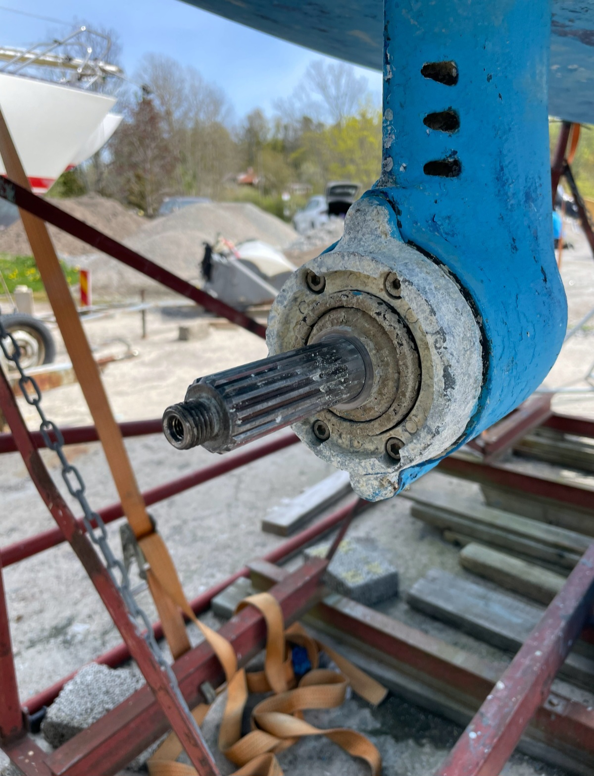 Det ser ut som om propellernavet har korroderat kraftigt. Axeln är i rostfritt stål, så aluminiumet i propellern har förmodligen så mycket korrosion så det är närmast fastsvetsat i axeln.