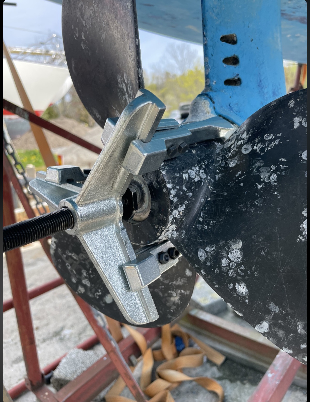 Jag tycker mig se att propellern har ett separat inre nav, kanske med en gummibussning runt. Risken med att belasta propellern med ett fastkorroderat inre nav är väl att den inre delen separerar från propellern och ställer till det rejält...